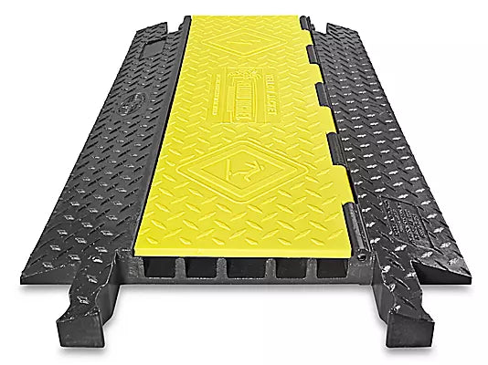 Sección central del protector de cable Yellow Jacket® de 5 canales, con sistema modular AMS® (Advanced Modular System) para configuraciones personalizadas. Diseñada para aplicaciones de alto tráfico y carga pesada. Su color amarillo de alta visibilidad mejora la seguridad en zonas industriales y de eventos.